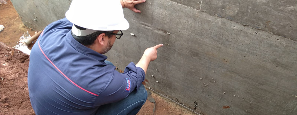 Para iniciarmos o trabalho foi pedido um teste de carga D'água previsto de acordo com a NBR 9574, para verificação de sua estrutura. Então percebemos que havia algumas avarias, como pequenas bicheiras nas paredes e em alguns pontos junta fria de concretagem.